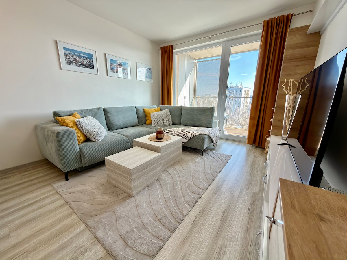 💫 Unwind in style and comfort💫 Stay in this cozy, modern studio just a 5-min walk from Main Street (Hlavná) with shops, cafés, and restaurants. 📅 Book your stay today! 🚀 ✨ Features: 🛌 King-size bed (180x200 cm) for ultimate comfort 💻 Dedicated workspace & fast WiFi 📺 Smart TV for your entertainment ❄️ Air conditioning 🌿 Balcony to relax 🚗 Free parking 🛒 Grocery store, restaurant, pharmacy & ATM 1 min away 🚉 Bus/train stations 25-min walk/ 5-min drive ✈️ Airport 15-min drive ❓ Send me a message