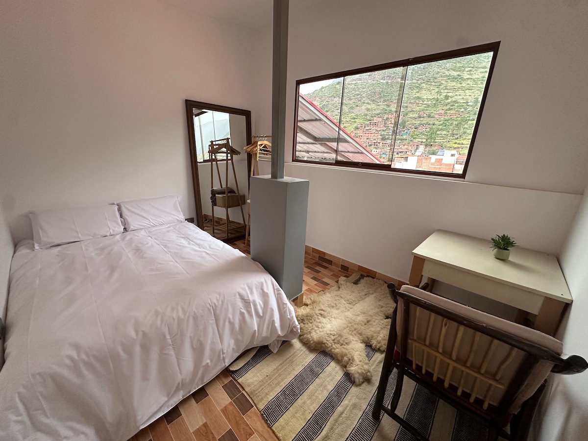 It's a nice newly built apartment designed for a nice stay in Pisac, it has first-class finishes and excellent lighting in all its spaces. It has 2 bedrooms, the mattresses are comfortable, the hot water is very good 24 hours a day in showers and faucets, and the wifi is of excellent speed, ideal for conferences. It is a 5-minute walk to Pisac's main square and close to restaurants, market, shops, health center, etc.
