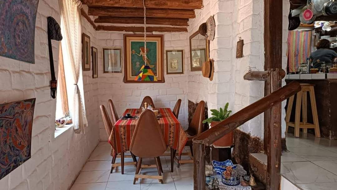 Spacious, light-filled 7x4 m private room with a direct view of a lush 9x9 m garden. Part of Tayta Wasi, a spiritual and artistic guesthouse in the heart of Pisac. The garden is a shared, living space—musicians, travelers, and friends often pass through, adding good energy and artistic flow. Room includes a sofa, table, rug, and natural light. Shared kitchen, clean bathrooms, and breakfast available at our café for S/15. A place to rest, create, and enjoy positive vibes.