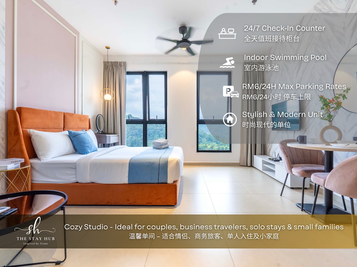 ✨ Brand New Studio at MOSSAZ – Sky Pool, Netflix, Ample Parking & WiFi! ✨ Stay in our brand-new studio condo (344 sq ft) at MOSSAZ! Perfect for couples or small groups (up to 3 guests). Features: Queen bed + sofa bed Compact kitchenette (microwave, no stove) 43" SMART TV with Netflix 100 Mbps WiFi Stunning infinity pool (39th floor) Near One Utama Mall Quiet, cozy, and budget-friendly! No smoking/pets. Quiet hours: 10 PM–9 AM. Book now! 🌟