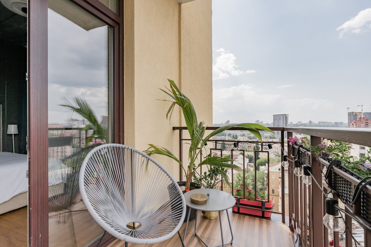 City Views From a Chic Highrise Apartment in the Heart of Kyiv