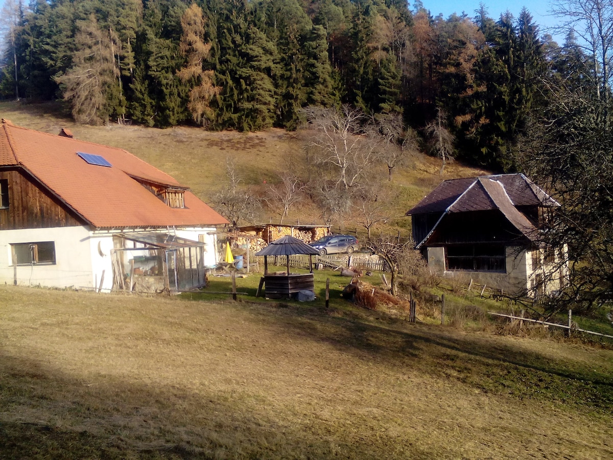 Welcome to the Hanibauer Log Cabin – your retreat at 1,100 meters! Our cozy "Gingerbread House" offers pure nature with views to Slovenia. Enjoy the quacking of ducks, the ringing of cowbells, and birdsong. Experience real country life as fields are mowed, fertilized, and cattle are herded. Perfect for a break from everyday life – breathe in fresh mountain air and enjoy the peace.