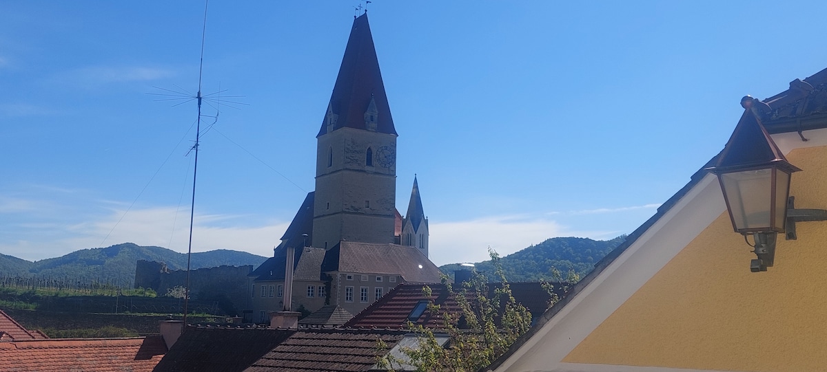 Right in the heart of the beautiful Wachau, we would like to warmly welcome you to this new apartment above the rooftops of Weißenkirchen. Enjoy the magnificent views from the vineyards to the Danube. The apartment (approx. 40 m²), built with a lot of love, is located in the quiet, historic old town center and is equipped with underfloor heating, a bathroom/toilet and a kitchenette. Local suppliers, rustic wine taverns and hiking or Bike paths are very close by.