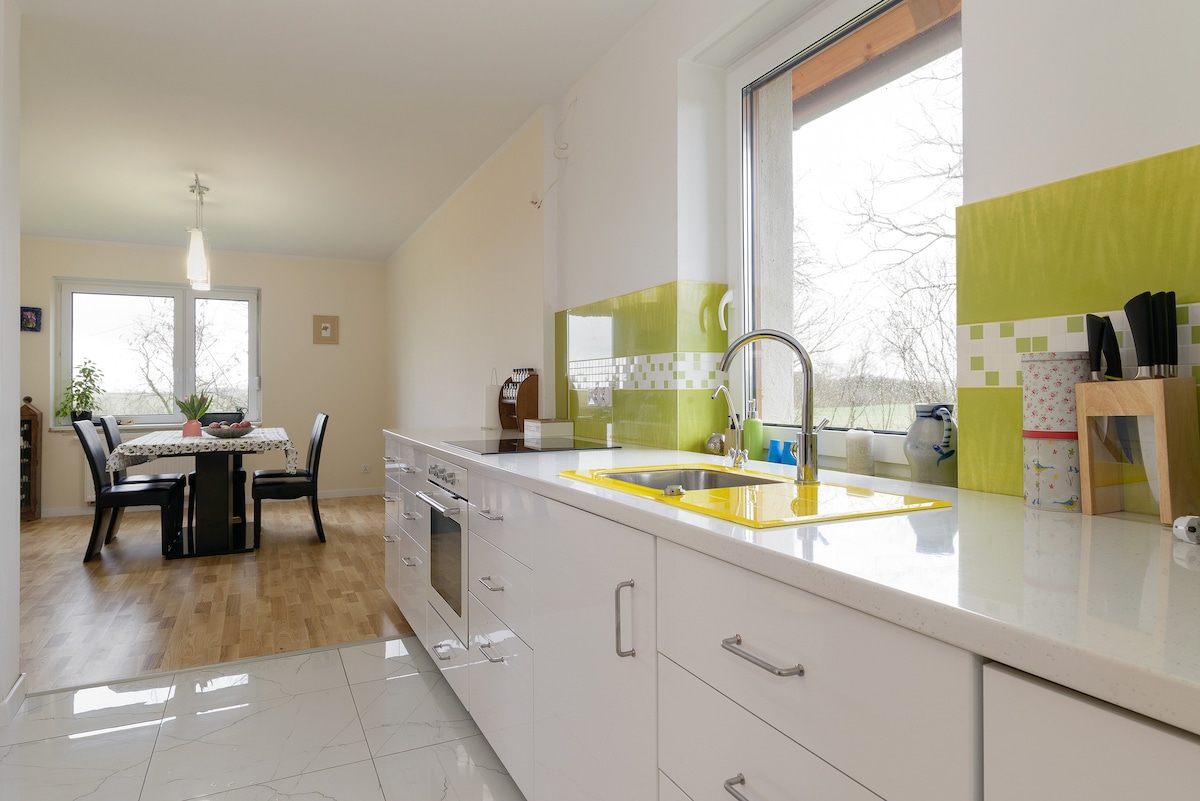 A magical, renovated 100-year-old cottage located in the middle of nowhere is waiting for guests who want to enjoy the peace and sounds of nature. The house is located in Natura 2000, which allows you to meet very interesting species of animals, especially birds and plants. The forest rich in porcini mushrooms is 350 m away. At guests' disposal 4 bedrooms, 2 bathrooms, kitchen, 50 m2 living room and terrace with grill. We also encourage you to use the space reserved for bonfires.