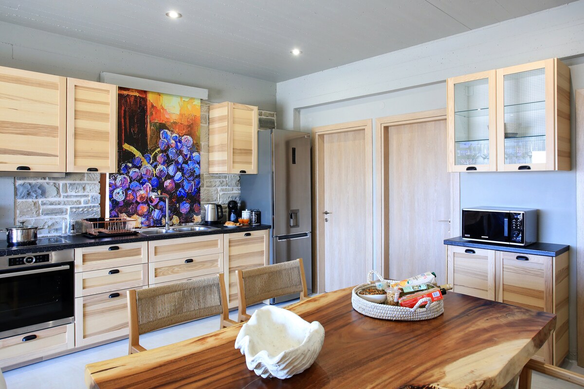 Surrounded by olive trees and with a breathtaking panoramic view, this solar powered house will not cease to surprise you! Kitchen and living room are not separated by any wall and this creates an open and comfortable environment. We grow our food in an organic way and we have 8 chickens and 2 goats, which provide us with fresh milk and eggs every day. So don't waste your time in crowded resorts and boring apartments. Come stay at our home, meet our charming goats and experience something new!