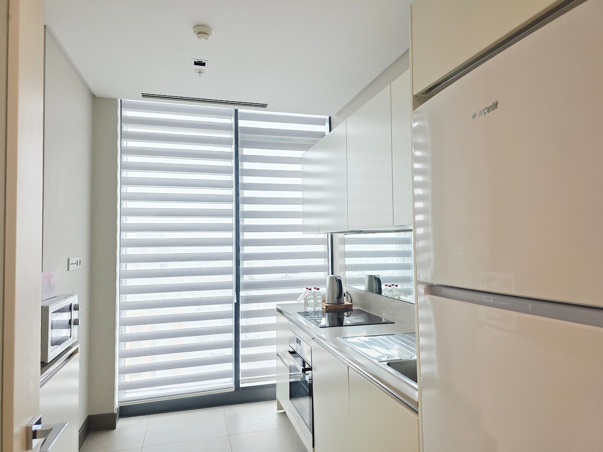 This luxury residence is located in Basın Ekpres. The unit is inside of a 5 star hotel with all the amenities available to our guests. This 1 bedroom unit provide housekeeping, a fully equipped kitchen, and access to a fitness and wellness center with a gym, spa, and swimming pools.There is a Starbucks, a Migros grocery store, high quality restaurants, a hairdresser, a pharmacy and much more at the premises.