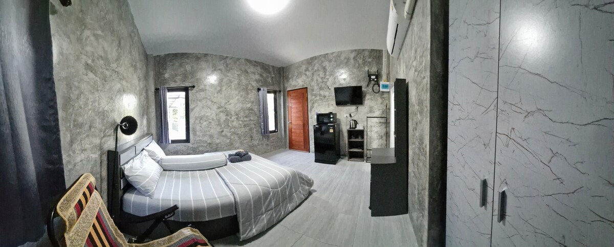 Find a quiet, natural accommodation near the beach, just a 2-minute walk. Behind the house is a view of the Sam Roi Yot mountain. A lovely villa suitable for both short and long stays. There is a kitchen, gas stove, living room, open dining room with sea breeze. Private parking in front of the house. Complete with common areas, a large lawn and swimming pool for children and adults. Enjoy sunbathing by the pool while the children have fun swimming. The house is on the road along Sam Roi Yot Beach. There are Thai and European restaurants, cafes, bars, a 7-Eleven market with home delivery. Near the park, island, Phraya Nakhon Cave.