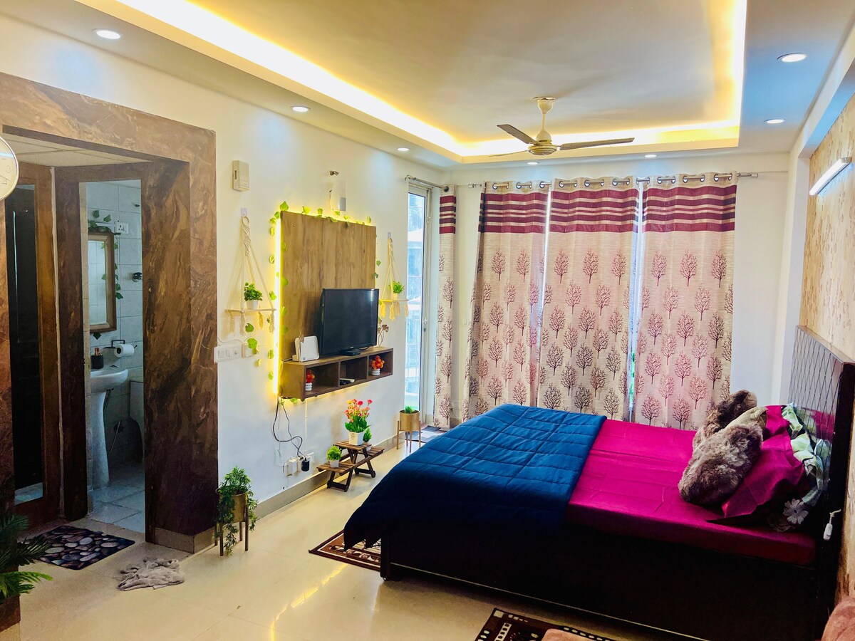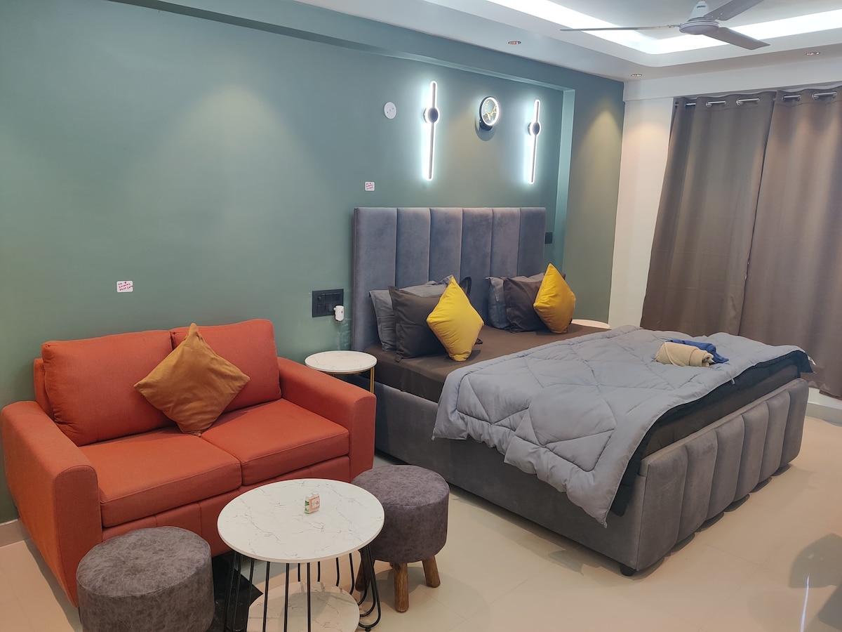 Brand New Studio Apartment! Our place is: - Family / Couple /Bachelor friendly - Fully Furnished with Brand New Equipments - Hygienic and properly sanitised. - 100m away from market with all essentials & restaurants. - Hosted by a Cool Host who is Adventurer, An Avid Traveler and Travel Brands Builder Also Includes: - Fully equipped and Functional Modular Kitchen - Water Purifier, Microwave, Induction, Kettle - High Speed Wifi - Free Parking - Power backup We welcome you to our charming Airbnb.