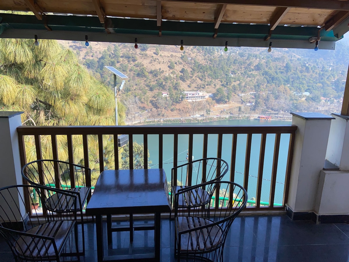 Nestled in the Kumaon hills, overlooking the picturesque Naukuchiyatal Lake is the abode of a retired Indian Army Brigadier. A spacious 5 bedroom villa, equipped with modern day amenities that can host 10 guests. Your family and friends can enjoy meals & games in the lush green lawns, cozy up indoors for board games or get out and explore the area trekking or boating. Guests who enjoy cooking have the entire kitchen or tasty meals & Kumauni delicacies can be prepared by on-call cook.