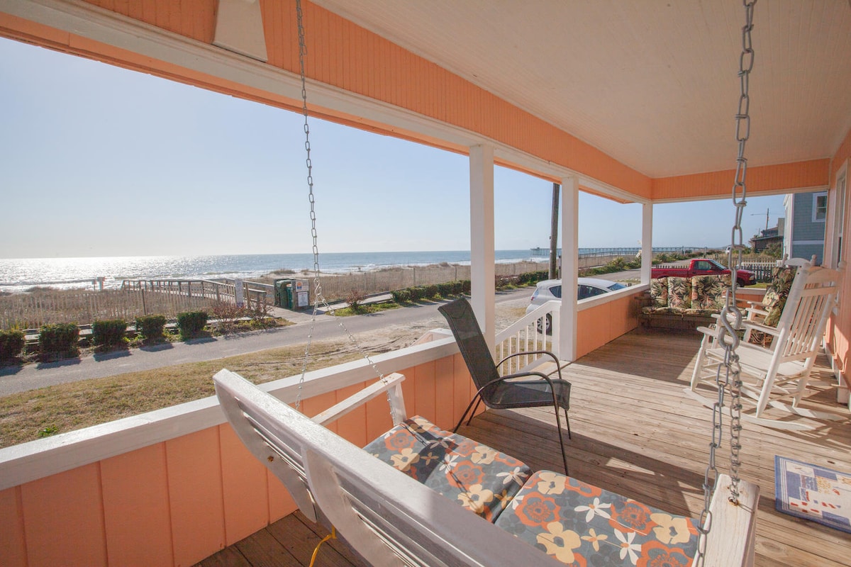 The front porch says it all! Sweeping views of one of NC's best beaches, with all the amenities of home and more. It's a kick your shoes off at the front door and pick them up 7 days later kind of cottage. With 4 bedrooms and 3 bathrooms, you can bring the whole family, or group of friends and have plenty of room to socialize and retreat. Linens are included, and the beds are made! Just bring your sunscreen and towel and a laid back attitude to enjoy all that Holden Beach has to offer.