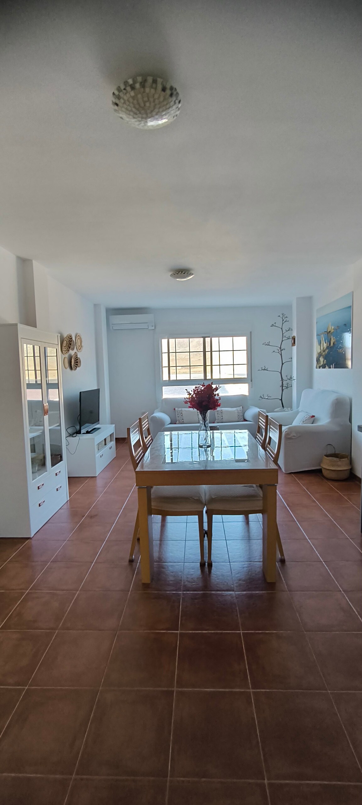 Fresh and bright apartment with a terrace, located in a quiet area in El Pozo de los Frailes, in the heart of Cabo de Gata-Níjar Natural Park. Just minutes away from San José and from the beaches of this amazing biosphere reserve. With a spacious bedroom with a queen-size bed, an open area with a fully equipped kitchen/dining room/ living room and a terrace with an extensible shade perfect to enjoy the amazing weather all year round. The house has no AC, but has ceiling and floor fans.