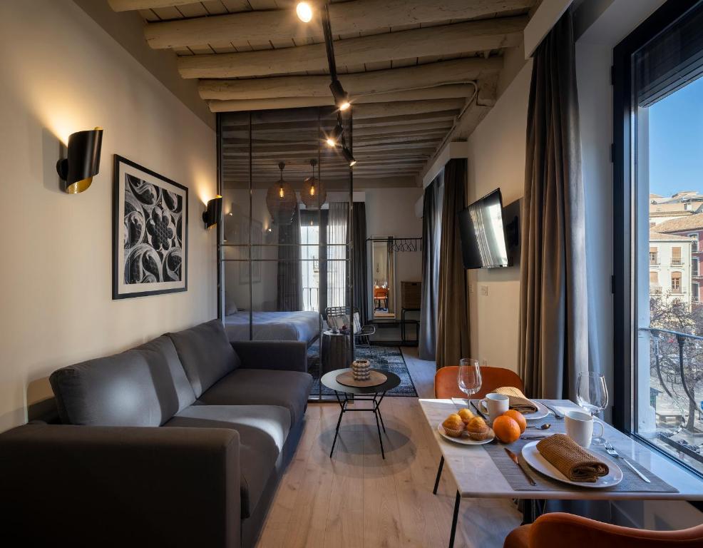 Open plan apartment completely renovated with love, style and top quality in a building with a lot of charm and wooden ceilings. It is located on a street restored by UNESCO in the very centre. Next to Plaza Nueva and a few minutes walk from both the Alhambra and the Cathedral, the Paseo de los Tristes, and the beautiful and charismatic neighborhoods of Albaicín and Realejo. Also, right below the apartment, there are buses to the Alhambra and the Albaicin if you don't want to walk uphill.