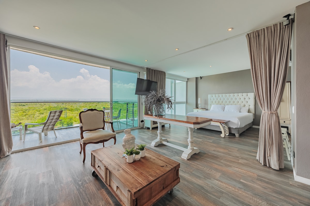 Best of both worlds: Sunset on the beach and sunrise on your balcony. 🌅 Welcome to a haven of design and comfort in the exclusive Morros 3 building in an apartment. It is kept under a strict maintenance program to ensure your stay is impeccable. Ours offers a spectacular view of the Swamp, giving you unique sunrises and absolute peace. It is the ideal refuge: quiet, cool and perfect for resting or working from home with direct access to the sea just steps away. 🏖️✨