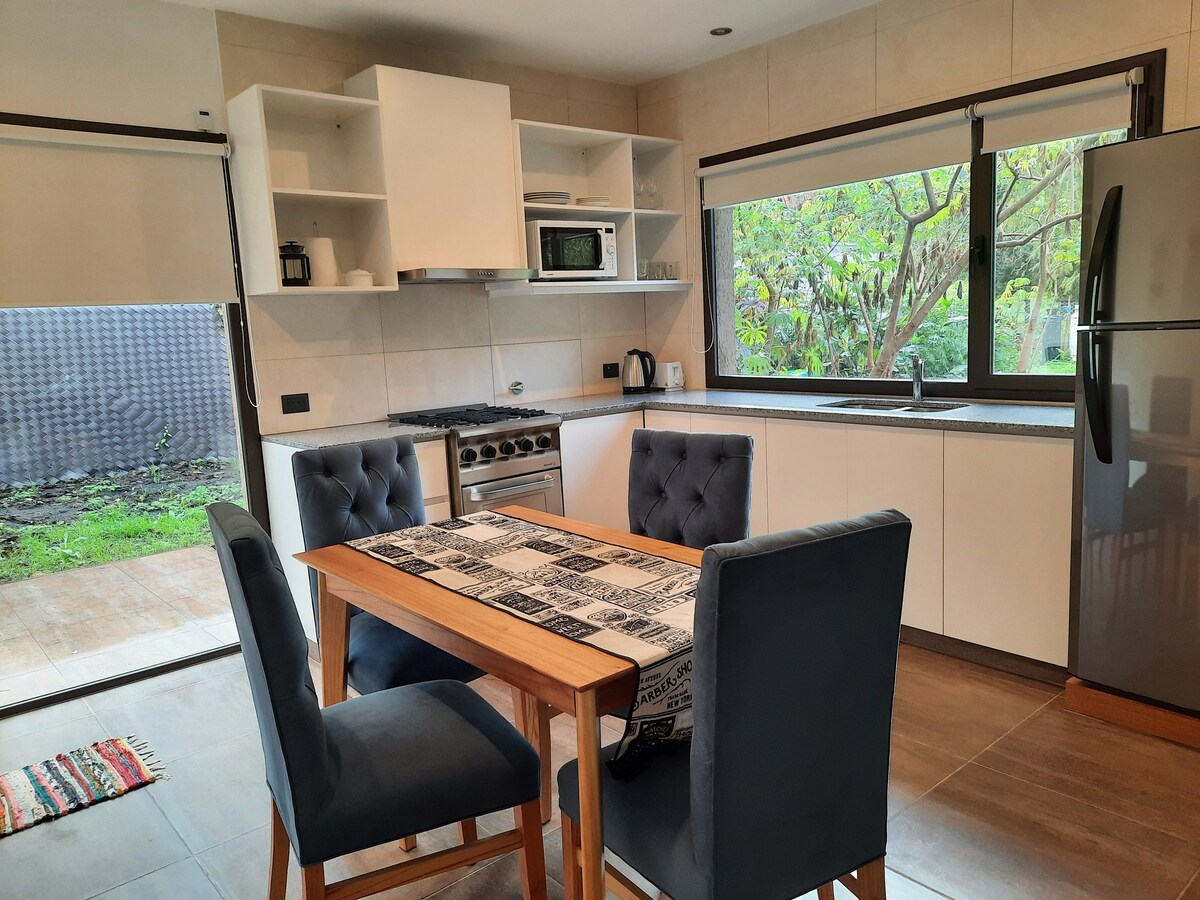 House for 4/5 people. Promotion September to November 2025: 30% Off nights from Monday to Thursday Designer house, modern house with contemporary lines, well integrated into the warm landscape of the Peralta Ramos Forest reserve, which invites you to connect with nature, located 15 blocks from the most visited beaches of Mar del Plata.