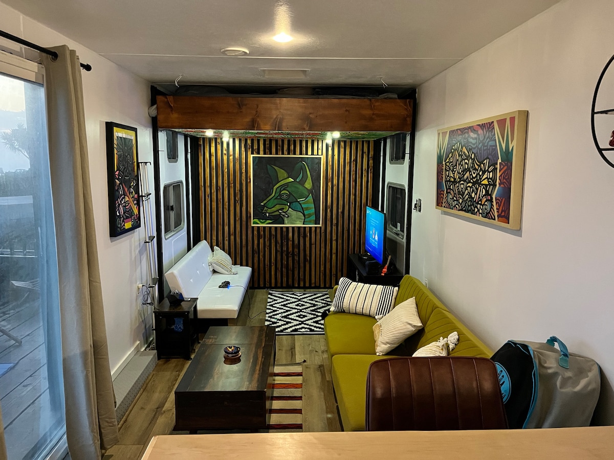 Fall in love with this unique charming and comfy place;. looking for a romantic getaway a chill out with friends or families with kiddos, and pets? Inspired by love, nature and adventure, we totally restored it with our hands, entirely renewed and dressed for your comfort. I hope you enjoy with same pleasure as we had building it. It's a camper! please expect, smaller cozy spaces, the camper is ideal for 3 people. FREE laundry serve for monthly or longer stay Max 2 pets allowed