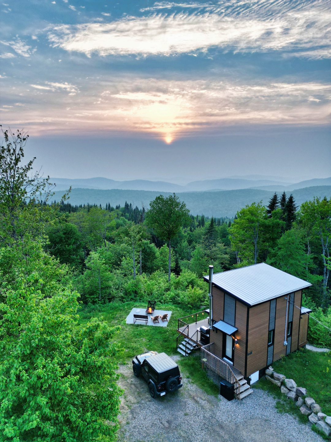 Step into the world of "TOPAZ," an upscale micro-house nestled atop the mountain. Immerse yourself in a captivating scenic experience, a mere 30-minute drive from Old Quebec. Indulge in a breathtaking view of the lake and mountains, along with awe-inspiring sunsets from the comfort of your bed. Embark on a journey akin to a national park experience through the mountain's distinctive topography by navigating recreational trails accessible year-round.