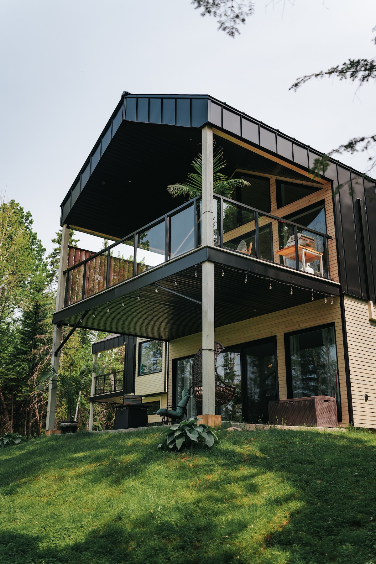 Small Scandinavian chalet for two people ideally located to enjoy the attractions of Charlevoix. It has a thermal circuit (hot tub, sauna, hammam) Very intimate and in the middle of the woods, the view overlooks the majestic river and the mountains in the distance. All the modern equipment is there and the comfort is absolute A/C and outdoor fireplace. The open concept design was designed for an immersive experience in nature: large windows, panoramic shower. Access via a private road at 500 m.