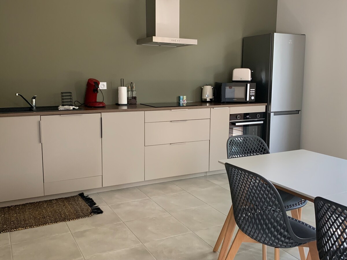 Bright 97 m2 house, 6 – 7 beds Bedroom 1: double bed, closet, bathroom and toilet Bedroom 2: double bed, closet Bedroom 3: double bed Upstairs shower room and toilet for bedrooms 2 and 3 Dining room, living room with decorative cantou, sofa bed Equipped kitchen with dishwasher, oven, microwave, fridge, coffee machine, kettle In the basement, a washing machine, a shower Baby equipment with baby bed, high chair on request Parking for 2 vehicles