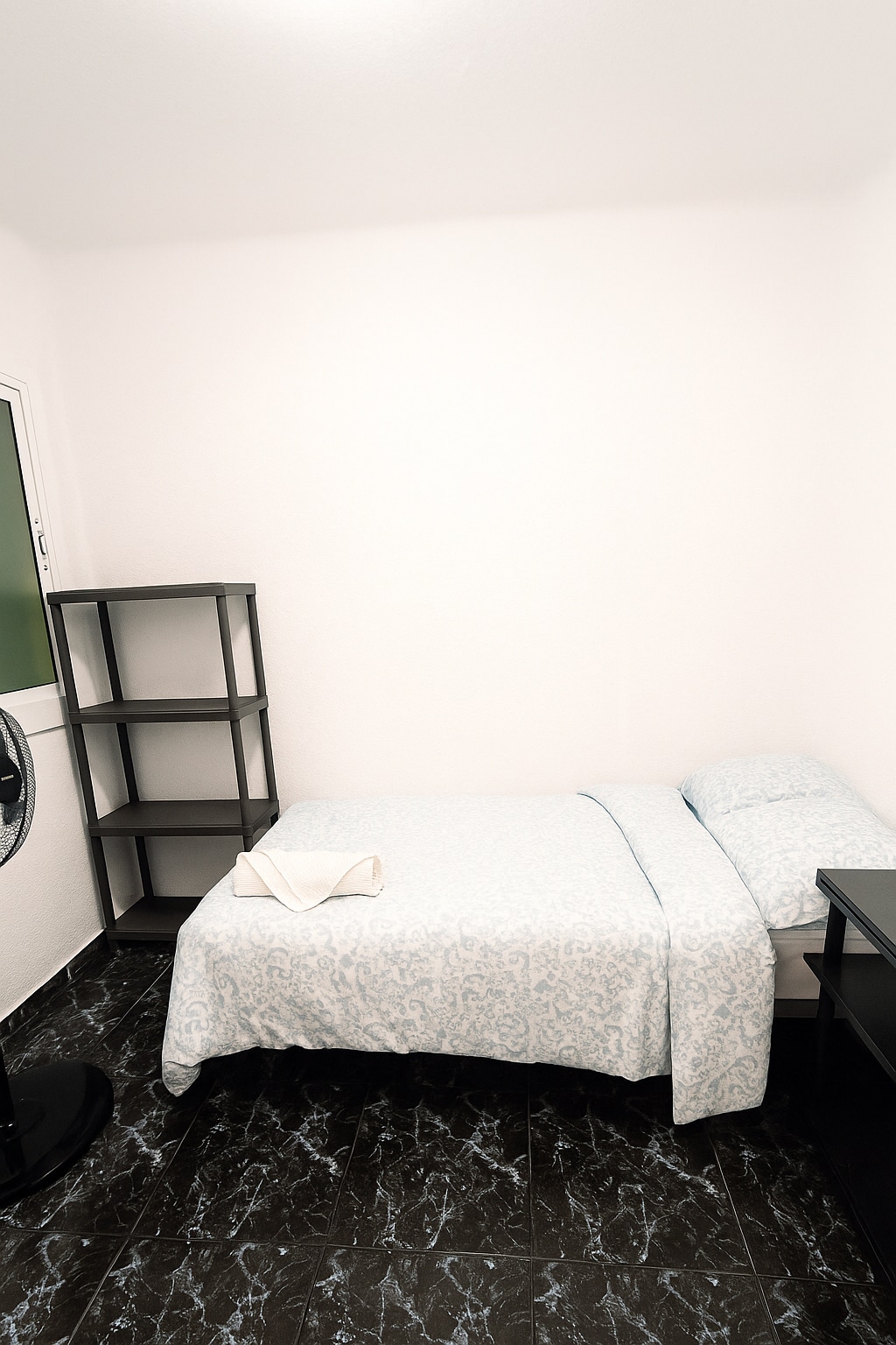 I rent a sunny single room overlooking a park. It's an apartment shared with me and another double room. Pros: Clean and quiet apartment, very well connected: metro L9. L5 and L1; Tram and buses. A 5-minute walk to Camp Nou. The room has a desk, shelves, a closet and a new bed. There is an AC in the dining room that serves all the rooms. Cons: The only possible one is that it is a 4th floor without an elevator. Welcome and ask as many questions as you like.