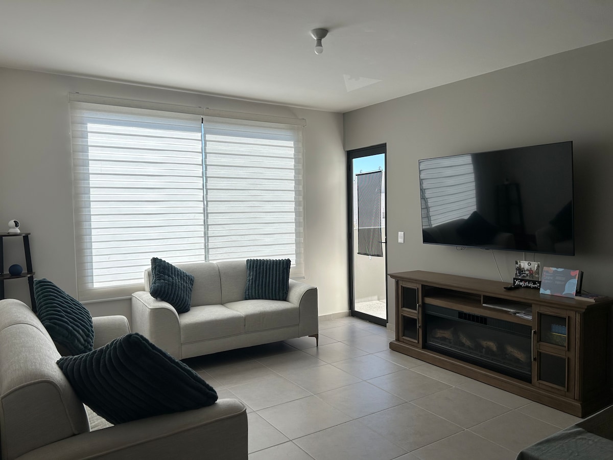 💵 Facturación Disponible 💵 🌿Refugio con estilo en Querétaro🌿 🛏️ 2 Recámaras | 2 Baños. ⭐Recámara principal Cama King baño privado. ✨Segunda recámara: Cama Queen 👶 Cuna disponible bajo solicitud Espacios Comunes 🎥 Sala de TV: Pantalla de 65" con acceso a streaming. 🍳 Cocina: Totalmente equipada para tu comodidad 🌿 Patio trasero: Tranquilo y acogedor, ideal para relajarse Amenidades 🏊 Alberca 💪 Gimnasio 🏀 Cancha de baloncesto 🎡 Área de juegos para niños ✨ Cosmos Homes Quality.