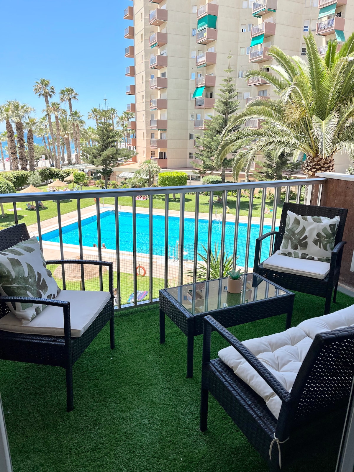Wonderful Apartamento en Primera Linea de playa with a spectacular view to the sea. Located in the Las Gondolas urbanization, one of the best in the area. It has two pools, tennis courts, padel courts, basketball court, petanque, ping pong, playground for children and 2 restaurants. The apartment has WIFI and cold /heat air conditioning and it's a few minutes walk to supermarkets and bars. It has all the comforts to relax and spend an unforgettable vacation.