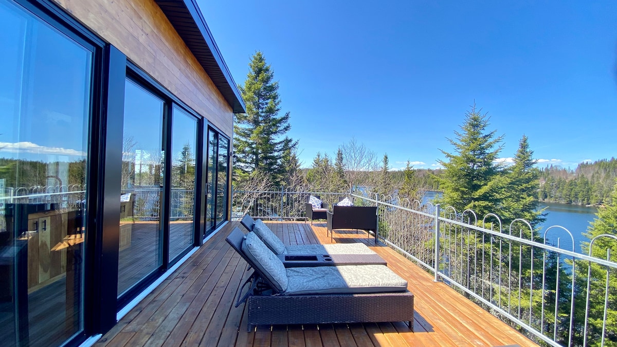 Authentic escape in the heart of nature. Beautiful fully equipped residence with panoramic views of the river and the mountains of St-Irénée. It will charm you with its comfort, brightness and peaceful location. (Ruisseau Jureux Estate). Conveniently located between Baie-Saint-Paul and La Malbaie, 12 minutes from the casino, close to the center of Grand-Fond and 10 minutes from Domaine Forget. It's the perfect base from which to visit the beautiful Charlevoix region. CITQ: 211223