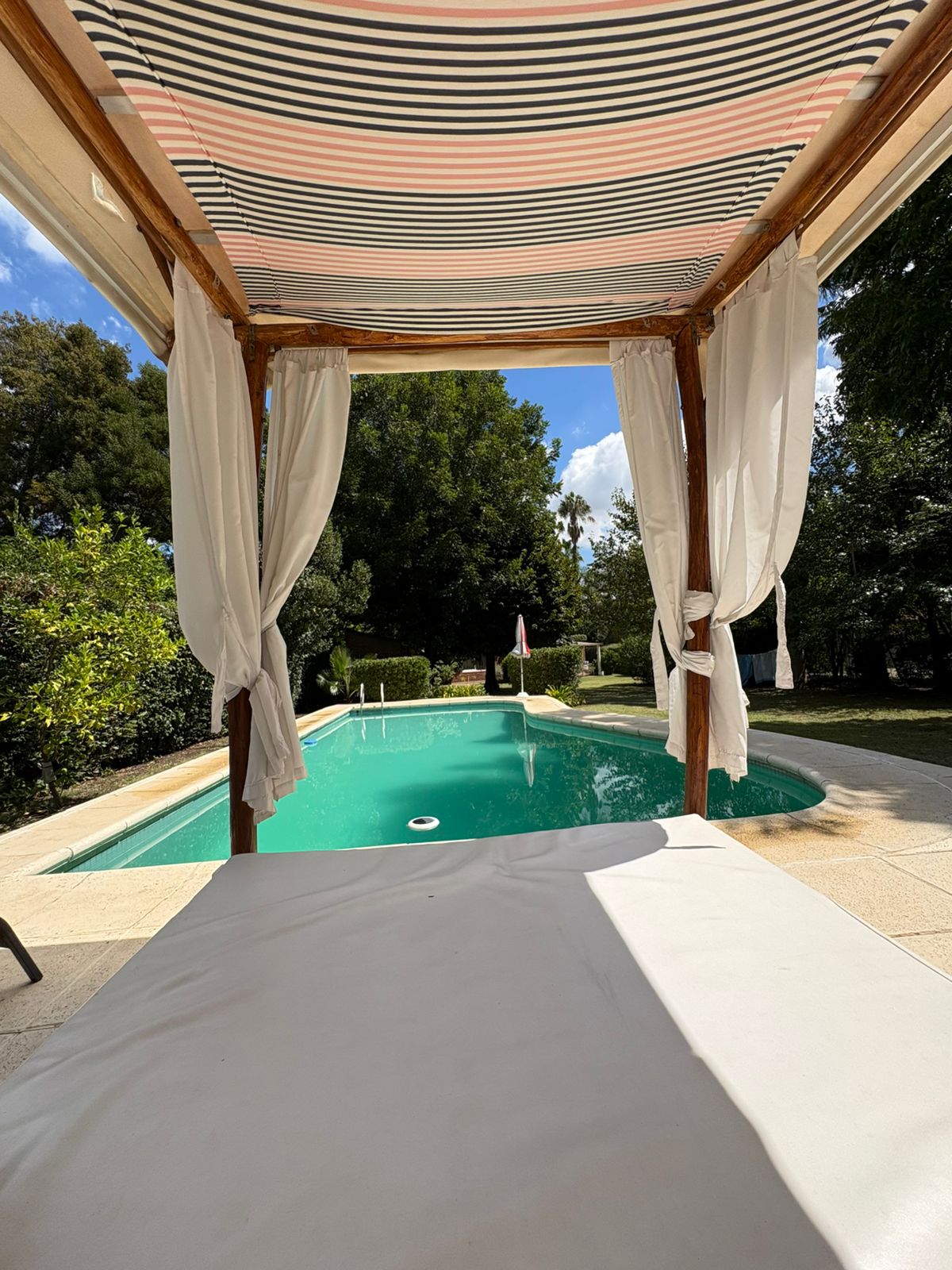 We invite you to spend a moment with family or friends, in contact with nature, away from the noise of the city. You can enjoy all the spaces we have, they are not shared, we have approx. 1 hectare: *Casa Amplia *Quincho and bathroom included *Perimetrated pool *Park with old trees, Eucalyptus, Pines, Fruit, Ombú, Nogal, Plums,Chestnuts, Arce, Mora, and a variety of flowers. Our space has: * Barro oven * Disc arado *Stove *Mangrullo