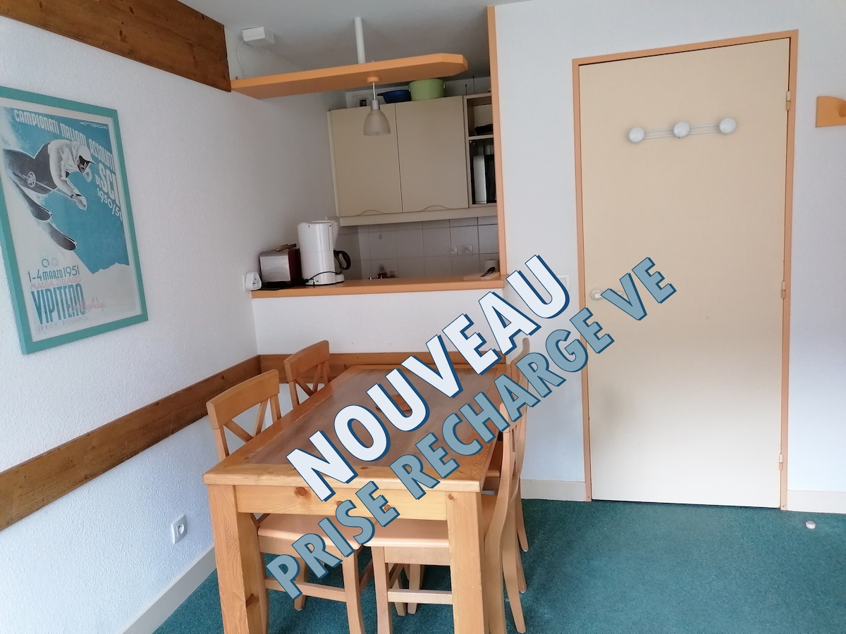 Studio for 4 people, completely renovated in August 2022. Located on the 1st floor with elevator at the foot of the slopes. Free parking. Shopping mall on the ground floor (bar/restaurant/press/supermarket/ski school/ticket office). The accommodation includes 2 bunk beds 140 x 190, 129 cm TNT TV, dresser with plenty of storage, an equipped kitchen, a large bathroom, 18 m² south-facing terrace facing the slopes + cellar in front of the studio to store your ski gear and suitcases. Pets allowed (under 10 kg).