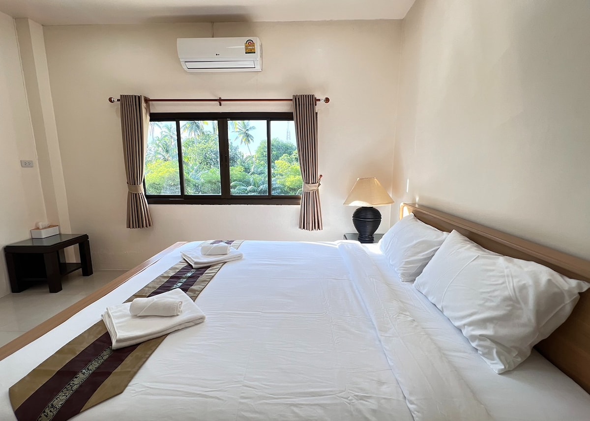 Indulge yourself with nature's most beautiful and peaceful beach front. It's a place where you can rest and connect with yourself and surroundings. The en suite has a large double bed, a sofa with a view around 50 metres from the sea. At the low tide the rocky beach is uncovered where you can spot crabs, jellyfish, mudskippers, and other sea life. You can rent a kayak free of charge, or walk to the Mu Ko Phetra UNESCO National Park, (1km away) and see the natural beach or even see monkies!