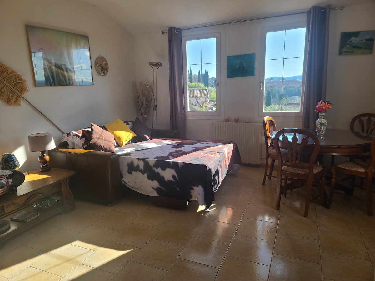 Need to recharge in the sun, between sea and mountain… my husband and I welcome you to La Palme! Charming studio with private terrace, bathroom, toilet , kitchenette+ breakfast area coffee and tea included! - Studio entrance via the terrace. -Pool to share with the owners - Panoramic view of the Tanneron Massif - 10 min from the beaches (by car/bus) - Bus stop 400 m away (to Cannes city center) - No naturism - no pets