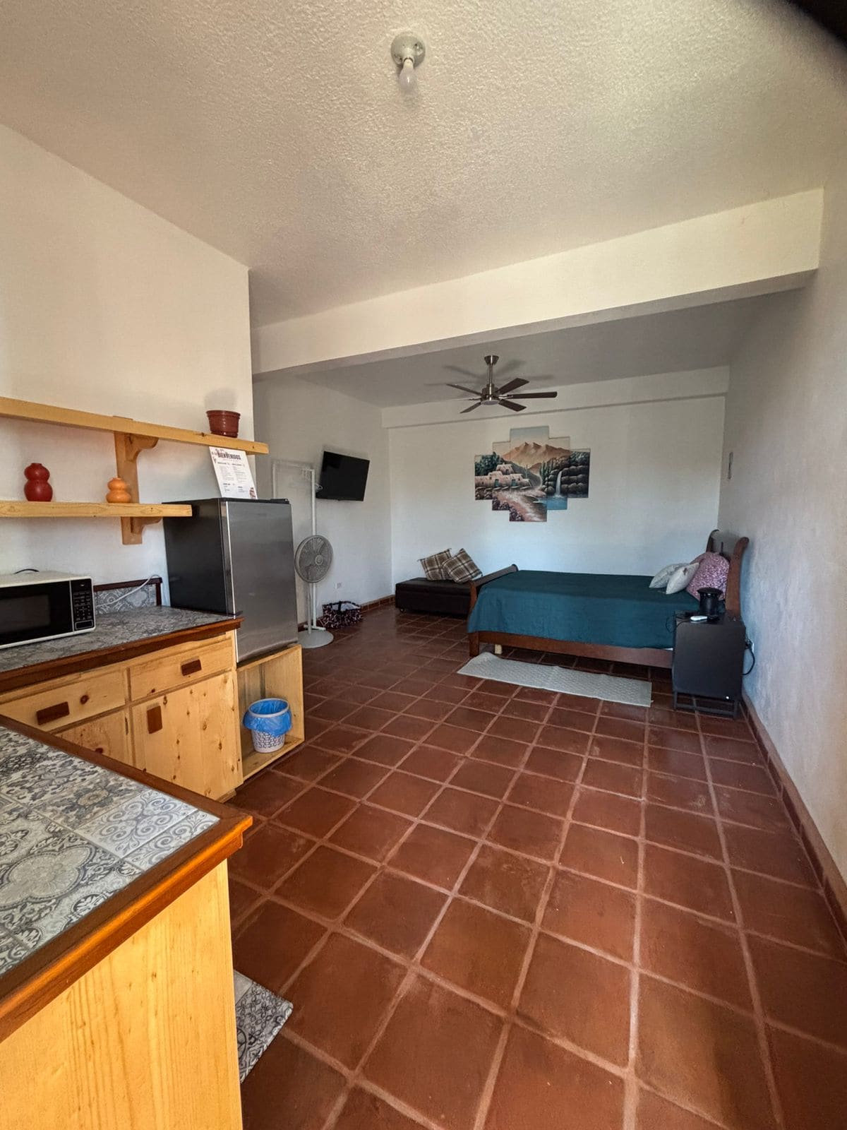 Room designed for a pleasant rest and to enjoy sunrises, sunsets, the sky, stars, and the moon from your terrace. Suitable for two people, with a Queen bed, air conditioning, fan, coffee maker, hot water, and high-speed satellite internet. Perimeter wall for privacy and security. The bathroom has a mirror, soap, shampoo, conditioner, hand towel, and hairdryer. Enjoy vineyards and wineries in Valle de Guadalupe. Safe and close to the region's most iconic places.