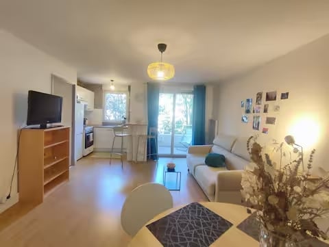 Welcome to this pretty boho cocoon of 32 m² in Blagnac, recently renovated. Ideal for 2 people, this studio is perfect for a romantic or professional stay. It is close to the shops of old Blagnac and the airport, while being in a quiet area. - Private parking 🚗 - Fiber Wi-Fi 💻 - Linen and coffee provided ☕ - Self check-in / out 🔑 Contact me if you have any questions, I'm available!
