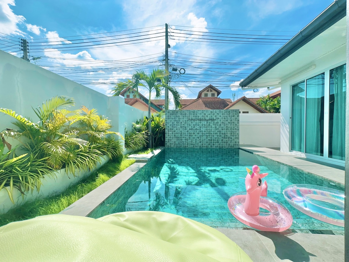 独栋4卧4卫泳池别墅|宽敞度假大花园|卧室跳泳池|临近中天海滩|靠近夜市|轻奢现代风|小区里免费停车
