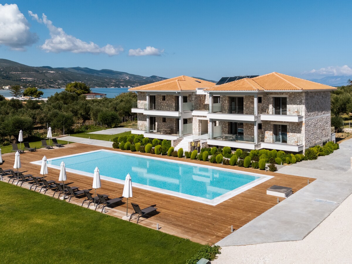 The Three Bedroom Apartment has a size of 134 sqm and is a private split-level stone-built apartment in Zakynthian style architecture with beamed ceilings and a private entrance. It offers a private garden with shared stone-built BBQ facilities.