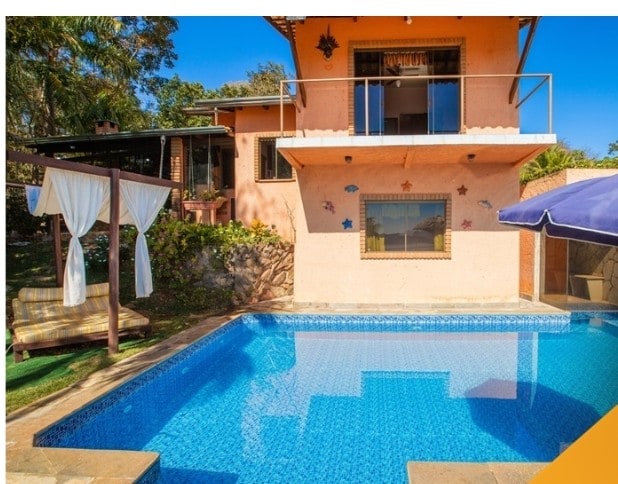 High Standard House on Lake Corumbá 3 – Luxury and Comfort for Up to 20 People Highlights: • 5 spacious suites, accommodating up to 20 people in total comfort. • Spectacular pool with wet area and complete gourmet space. • Spacious and air-conditioned environments, perfect for relaxing and socializing. • Privileged access to the lake, ideal for water sports and contact with nature. • Motorboat rental available (separate cost) to explore the beauties of the lake.