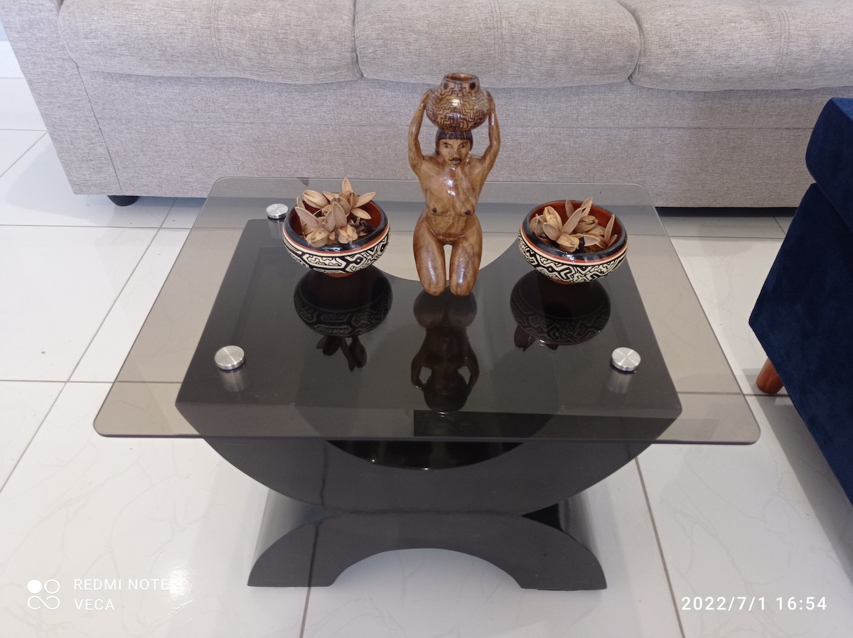 Kick back and relax in this calm, stylish space. The apartment is on the second floor, with a separate entrance, fully furnished and everything new, we have air conditioning and Wi-Fi. The only thing that is shared is the terrace, common areas. We are located in the center of Pucallpa, 5 minutes by motokar to the main square and supermarkets and 15 minutes from the airport.