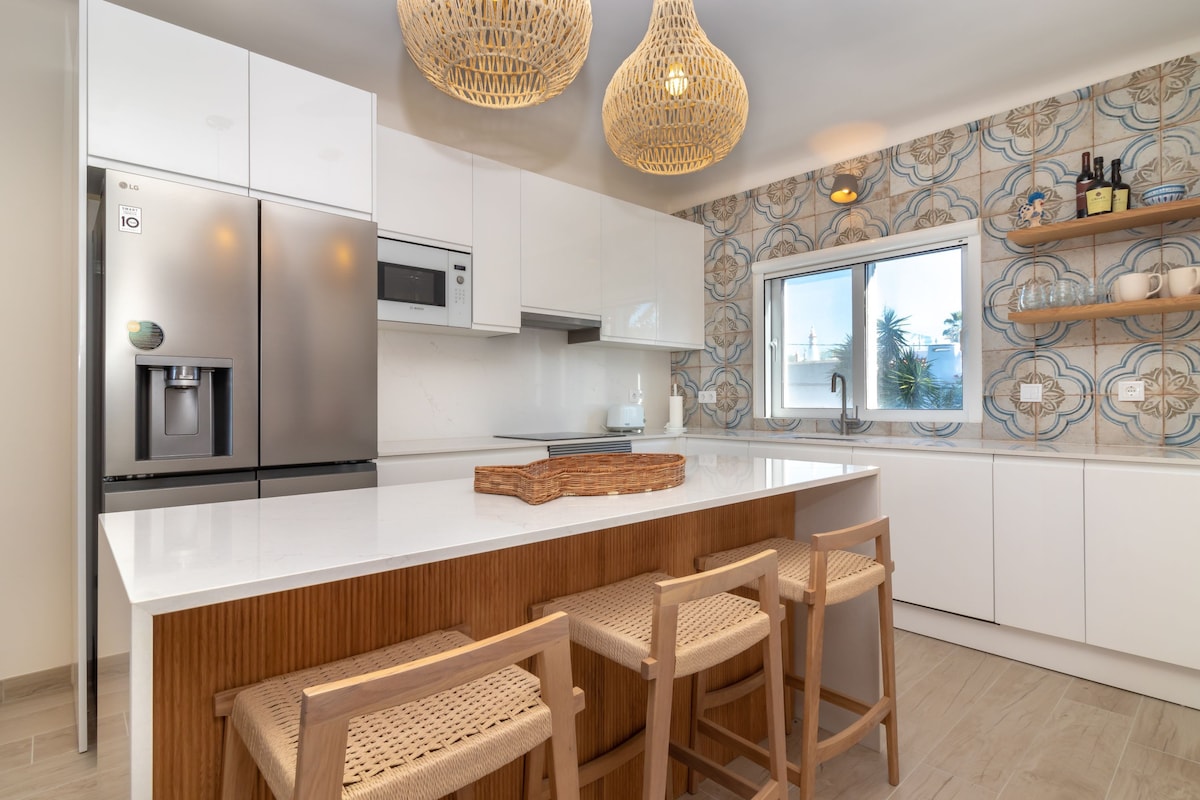 Townhouse located in a quiet and unique area. 5 minutes by car from the wonderful village of Ferragudo and 5 minutes on foot from Caneiros Beach. The house has 2 bedrooms - 1 with a double bed and another with 4 beds (use up to 3 single beds or as 1 double bed). The living room is spacious with a fully equipped open space kitchen. It has 1 garden, 1 outdoor dining space and 2 great terraces to enjoy at the end of the day. There is also 1 covered and free parking space.