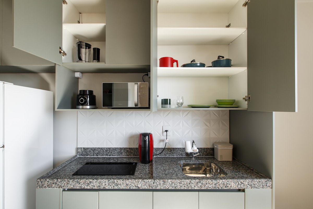 Relax in this brand new and lovingly prepared space. The studio is located in the Santa Lúcia neighborhood, just minutes from BH Shopping, Mercado de Origem and the Buritis neighborhood. It is also a short drive to Savassi, which takes around 15 minutes. It is fully equipped with a refrigerator, cooktop, 3 Corações coffee maker, microwave, kitchen utensils, air conditioning, a comfortable bed, hairdryer, iron and much more!