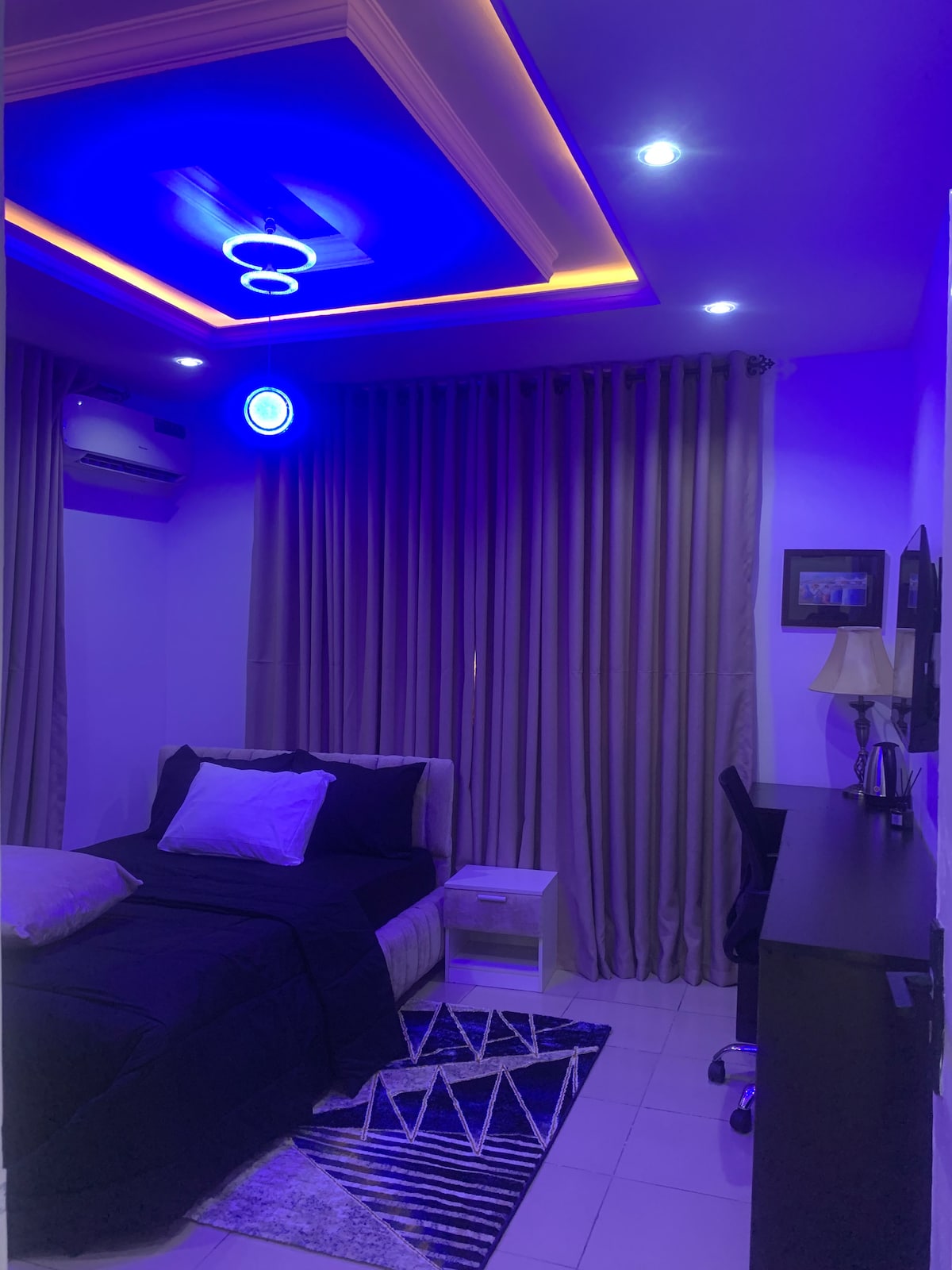 Come stay at our private, quiet, and simple apartment located in the heart of Lekki. This spacious room is perfect for traveling friends or a family looking for a peaceful stay. It includes a queen bed, living room (with a sofa bed), 1 bath, and 1 full-size family kitchen. Enjoy amenities like 24/7 electricity and fast-speed internet service. There is plenty to do within walking distance, including bars and restaurants, or you can relax at home and watch Netflix on the Smart TV.
