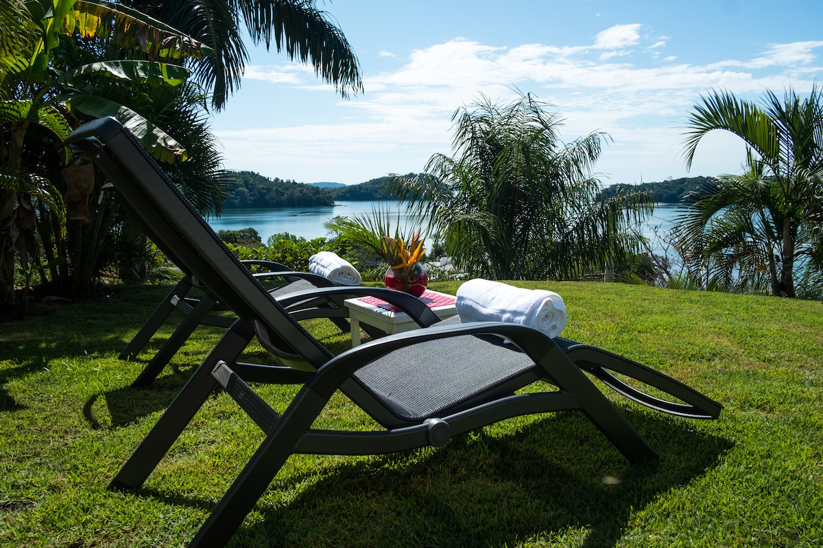 Astonishing views, bird sounds & howler monkeys, Our region is designated by Panama as a Natural Water Preserve with 23 islands, lots of snorkeling, whale watching and beachcombing! One of the top best sport fishing destinations in the world! Casa Tanamera has a large garden set amidst the jungle. it boasts a plunging view on the beach and its entire bay area. the house is large enough for 4 persons, has large bedrooms and bathroom, a large patio with its dining, BBQ and lounge area.