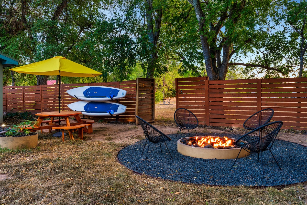 Escape to this serene & relaxing stay where the joy of Lake Austin is just past the backyard. If you're looking to get out on the water or explore Austin, this furnished home provides everything you need for a peaceful stay. The property consists of a main home and a detached guest house. Outside, there's a fenced yard with hanging chairs, a hammock, a dining table, & a fire pit. Walk out the gate in the back to a secluded, public park on the banks of the serene, constant level, Lake Austin.