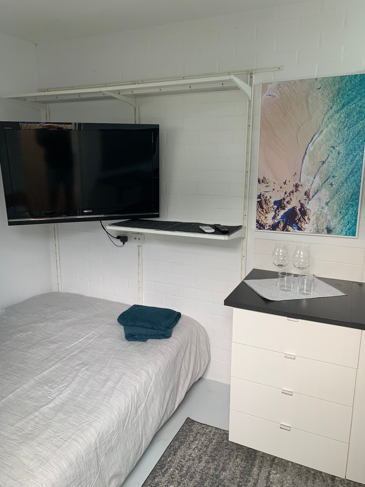 This is a unique spacious studio that has a style all its own. Our studio has all the creature comforts, King Koil Chiro mattress, beautiful cotton bamboo sheets, TV in the bedroom as well as a 55cm TV in the lounge area. Comfort plus sofa, and a fully functional kitchen with dishwasher. We have a washing machine for your convenience too. This studio has a small balcony for you to enjoy the view of Ngarkal Beach while you sit and relax. Only 70m to the water. Please read Important Note below