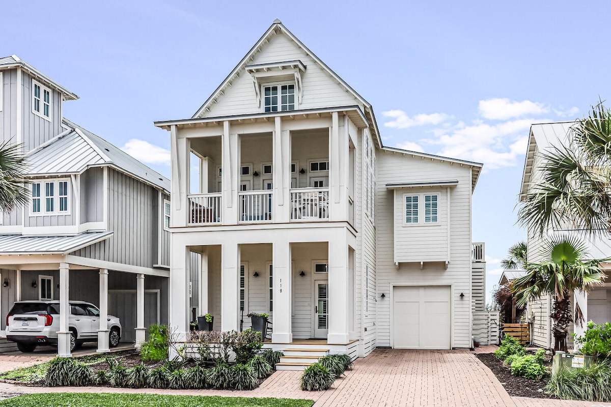 Come make memories at this unique, family-friendly oasis! This retreat promises a luxurious beach vacation! Upscale living, this is simply the finest house in Port Aransas. ~Free Golf Cart ~Very close to the beach ~Private Heated Pool ($50 per day additional cost to heat the pool) ~Fire Pit with wood and s'mores included (November to April) ~Located in the quiet part of town ~Walk to all the restaurants ~Huge outdoor TV with Sonos Soundbar ~Lawn games (Cornhole, Mini Golf) ~Keyless Entry