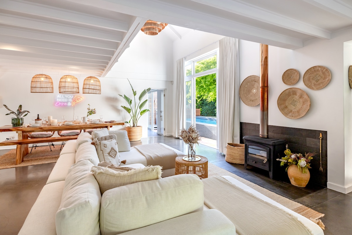 Immerse yourself in a luxurious home retreat nestled in nature. This magical sanctuary is surrounded by mountains and ecological lakeside walkways. We have lovingly created a space to savour a true indoor/outdoor experience; a spacious garden, salt water pool, wrap-around porch and a unique outdoor star-gazing lounge. The interior design is carefully curated, with soothing color palettes, artistic touches and an open-concept layout where light streams through floor-to-ceiling windows.