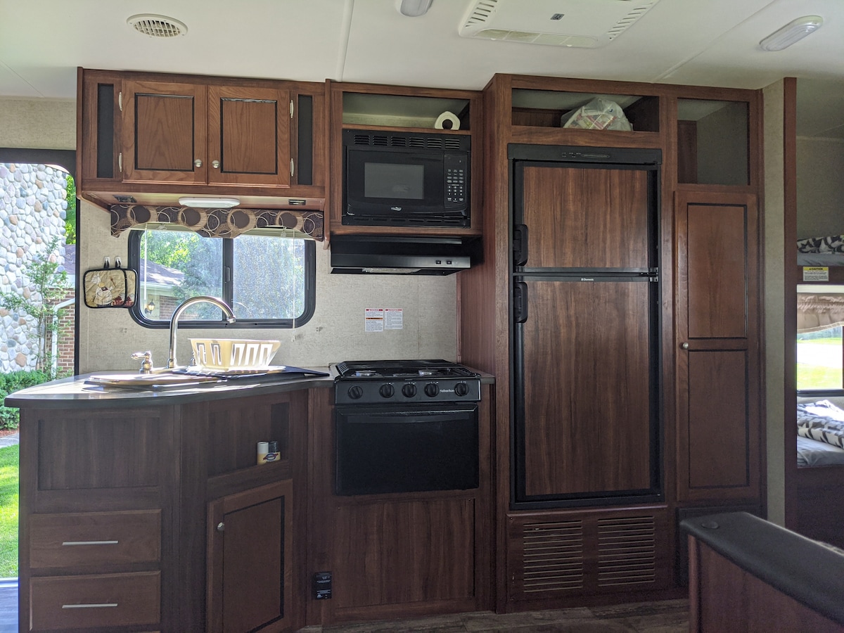 Betsie -35Ft RV Camper in Woods -Firepit & Hot Tub