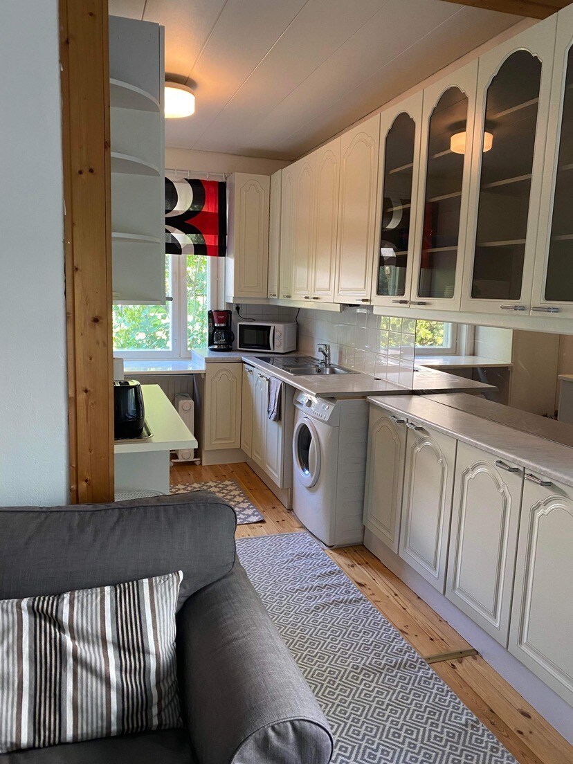 Very tidy, newly renovated studio in a top location in Myllymäki. Downtown amenities and Goodman Shopping Center within a short walk (approx. 750m). The rental price includes, for example, bed linen, towels and dishes for cooking and dining. The apartment also has WiFi, a washing machine and a TV. Parking on the street. Quiet location and private entrance directly from the yard. 7 days - 27 days -20%. 28 days and over -40%. For longer stays, interim cleaning is available at an additional cost if needed.