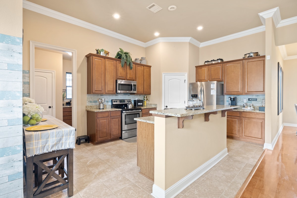 Come in and relax in our spacious 3 bedroom two bath home featuring an open floor plan with the Master Bed and ensuite bath split on one side of the house and the other two bedrooms and bathroom on the other side. The Master Bedroom has a King size bed and the other two bedrooms both have queen beds. Each room is equipped with a Samsung Smart TV and the home has high speed internet and Cox cable. The neighborhood is very family friendly. Be sure to listen for the ice cream truck that passes!