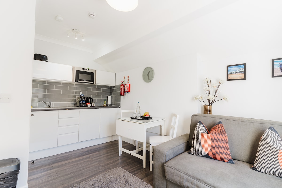 Our ground floor accessible one-bedroom apartment offers a cozy and spacious retreat. Relax on the superking bed in the bedroom, and accommodate extra guests with the single bed and sofa bed in the lounge area. The apartment features a well-equipped kitchenette, perfect for preparing meals. Enjoy the convenience of a walk-in shower in the modern bathroom. Located in a prime central area. Stay connected with free WiFi and take advantage of our complimentary parking.