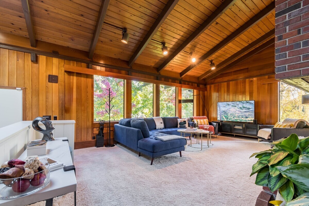 The Barnhaus at Treetop Lodge—formerly The Studio—was completely and meticulously renovated for 2025. This handcrafted retreat sleeps 7 (2 kings, 1 bunkbed and a sofabed) with luxe TVs, a high-speed gaming PC, hot tub, firepit, EV Charging and gym. Set on 14 private acres with hiking trails through the forest that lead to a secluded lakefront. The private hot tub with string lighting is where rustic charm meets high-tech comfort—surrounded by nature and built for relaxation or play.