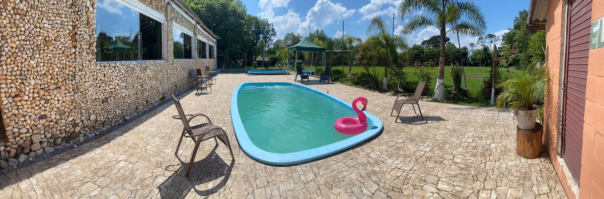 Viva momentos únicos e relaxe neste belo espaço. Chácara bem localizada, está a 56km de Curitiba e fica apenas 6km da rodovia, com fácil acesso. Oferecemos um amplo espaço de lazer, com churrasqueira, fogão à lenha e uma casa muito aconchegante. É um lindo espaço no campo para viver bons momentos com a família e os amigos. O espaço é PET friendly